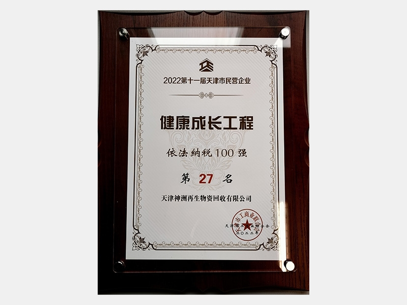 2022第十一届天津市民营企业健康成长工程依法纳税100强第27名
