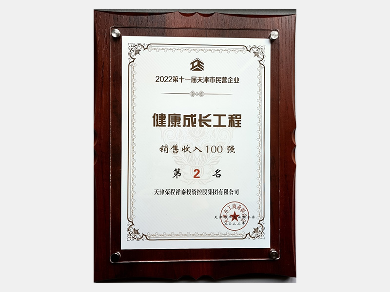 2022第十一届天津市民营企业健康成长工程销售收入100强第2名