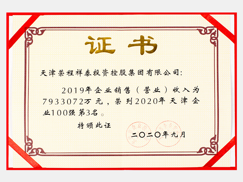 2019年企业销售(营业)收入为7933072万元,荣列2020年天津企业100强第3名