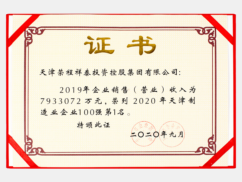 2019年企业销售(营业)收入为7933072万元,荣列2020年天津制造业企业100强第1名