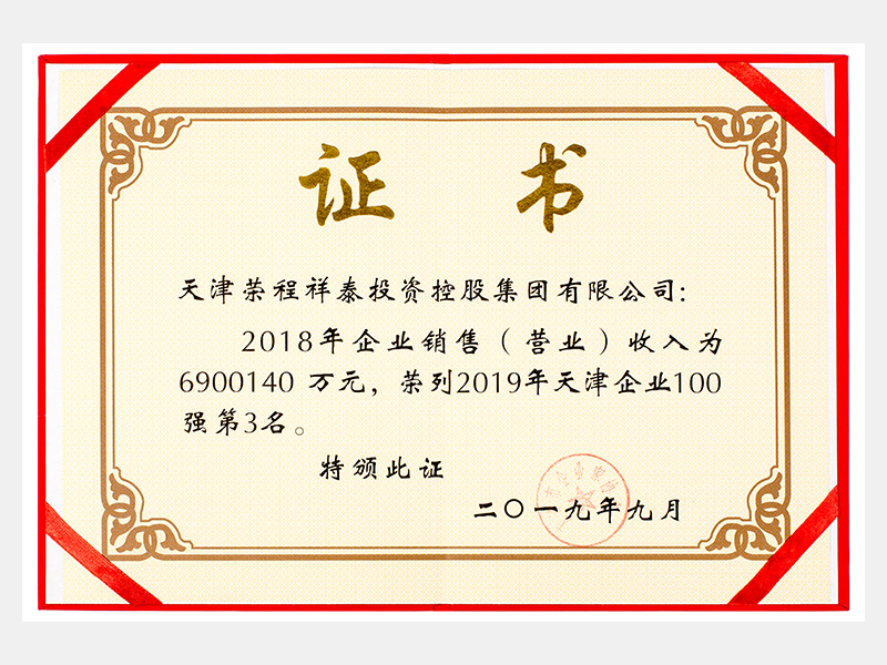 2018年企业销售(营业)收入为6900140万元,荣列2019年天津企业100强第3名。