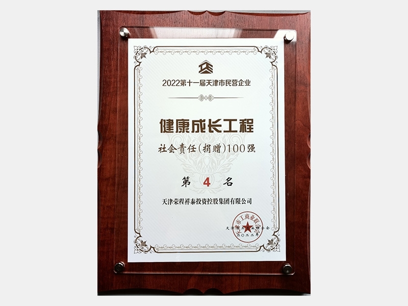 2022第十一届天津市民营企业健康成长工程社会责任(捐赠)100强第4名