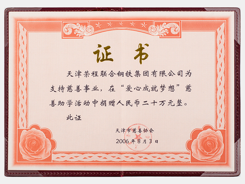 在“爱心成就梦想”慈善助学活动中捐赠人民币二十万元整