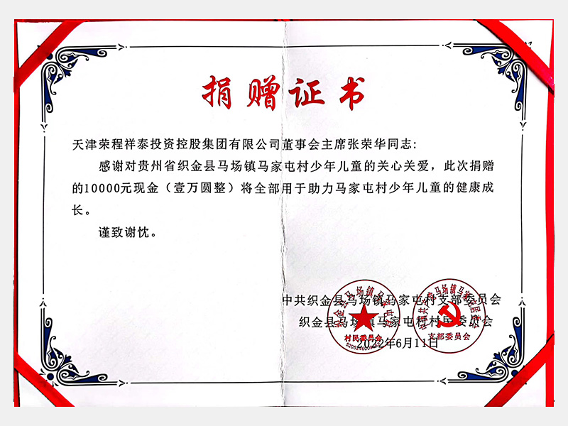 感谢捐赠10000元现金助力贵州省织金县马场镇马家屯村儿童健康成长