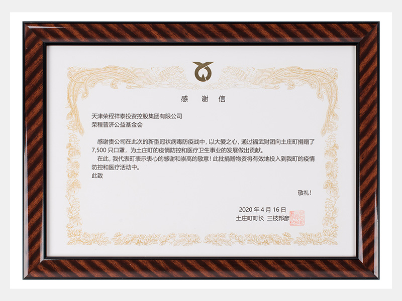 : “人道、博爱、奉献”红十字精神-防疫物资捐赠感谢证书