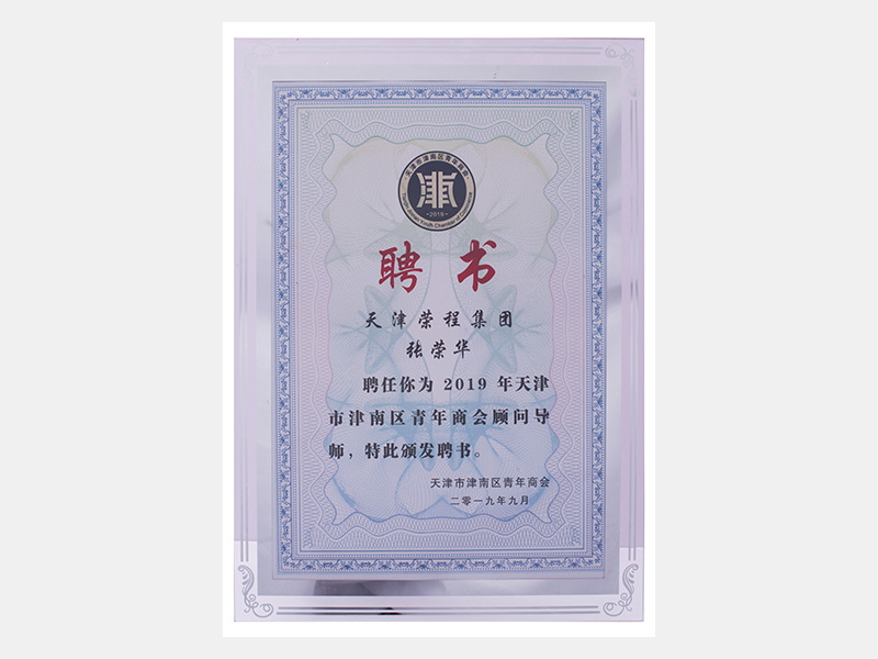 天津集团张荣华聘为2019年天津市津南区青年商会顾问导师(聘书)